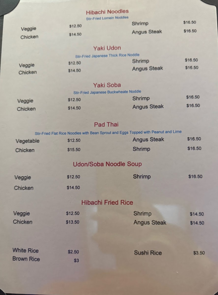 - Lunch Menu - Hibachi Entrées