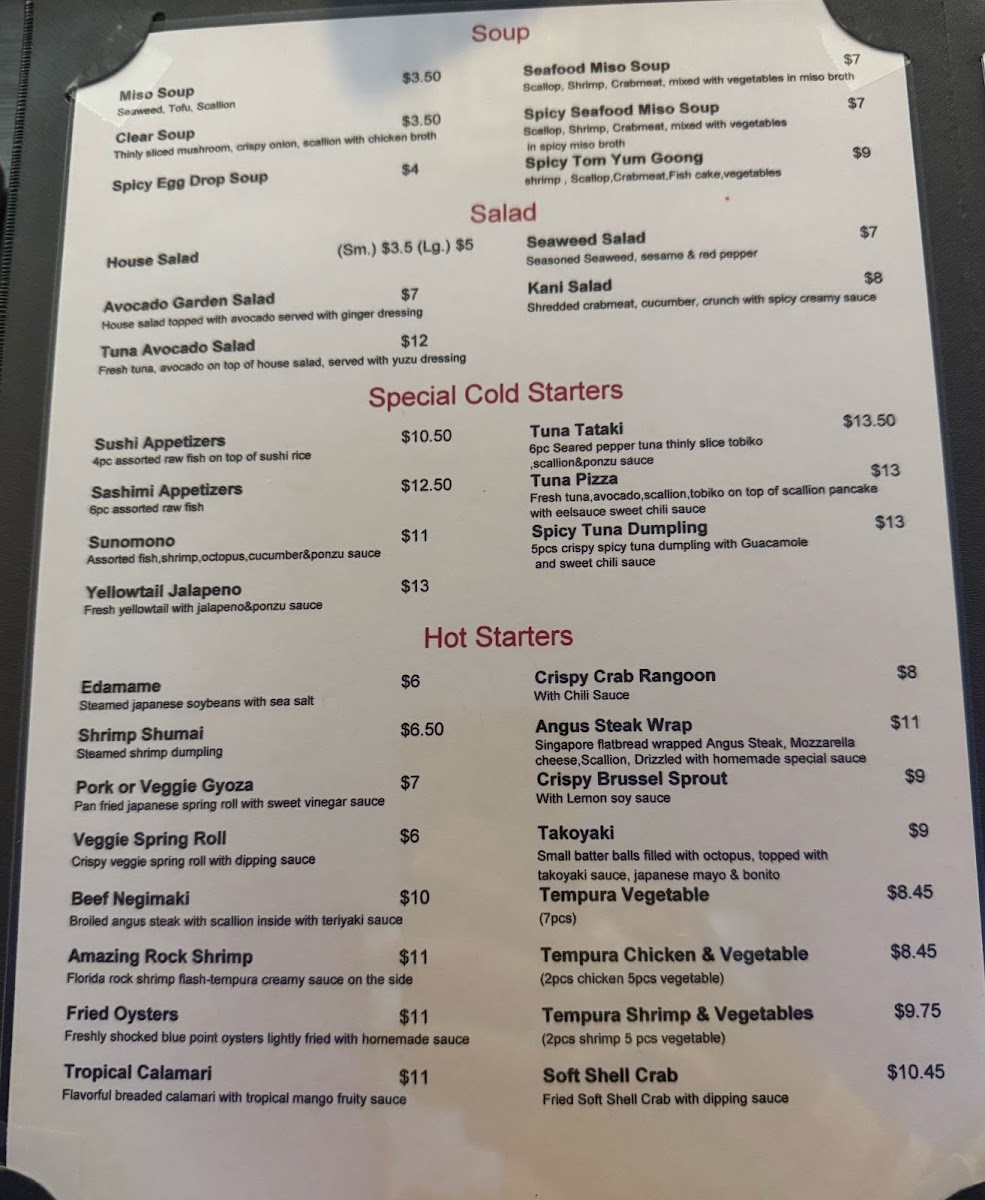 - Dining menu - Sushi Bar Entrées
